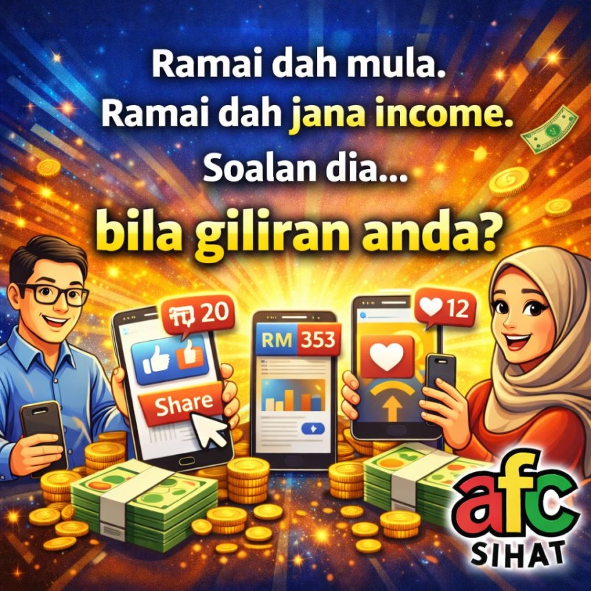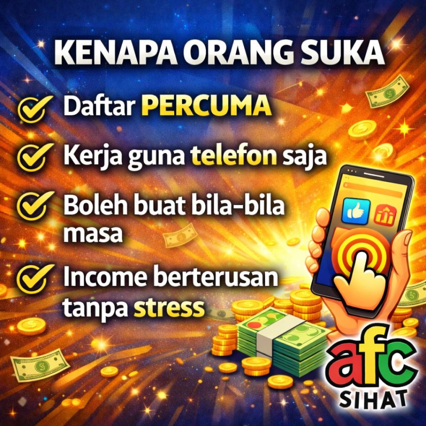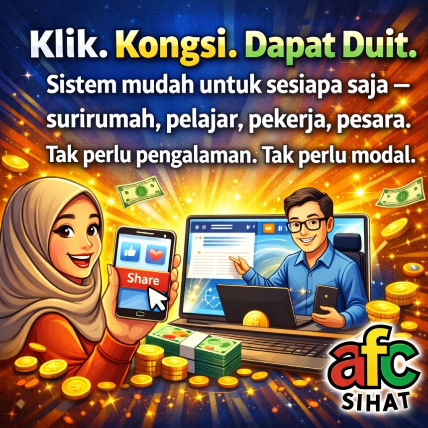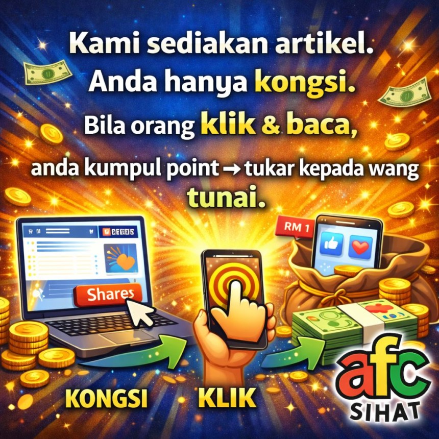 Anda hanya kongsi. Bila orang klik & baca, anda kumpul point → tukar kepada wang tunai.