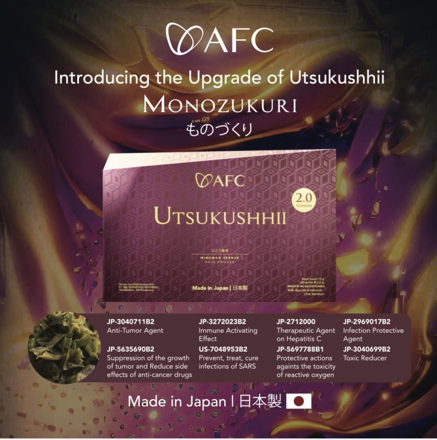 Utsukushhii ialah produk kesihatan premium dari AFC Japan yang telah dinaik taraf kepada Versi 2.0, dihasilkan menggunakan konsep Jepun “Monozukuri” — iaitu falsafah pembuatan Jepun yang menekankan kualiti, ketelitian dan kesempurnaan dalam setiap produk.