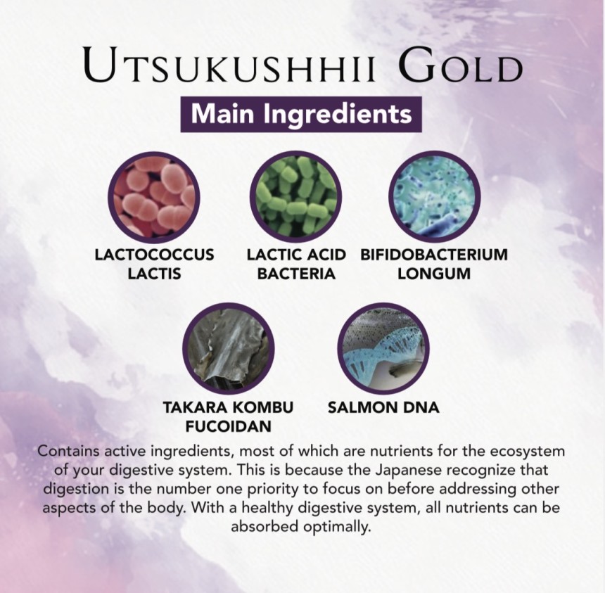 Utsukushhii Gold adalah asas kepada kesihatan seluruh badan dengan memulihkan dan menguatkan sistem penghadaman dari dalam.