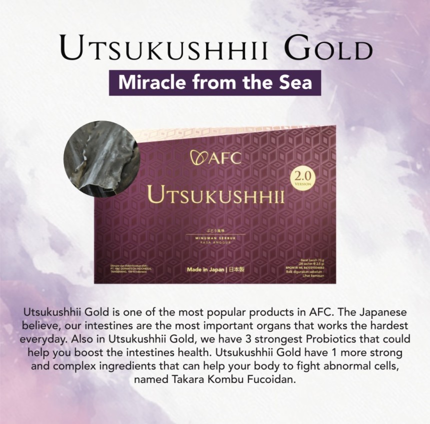 Utsukushhii Gold ialah antara produk kesihatan paling popular keluaran AFC Japan, dibangunkan khas untuk menyokong kesihatan usus, yang dianggap oleh orang Jepun sebagai organ paling penting dan paling kuat bekerja setiap hari.